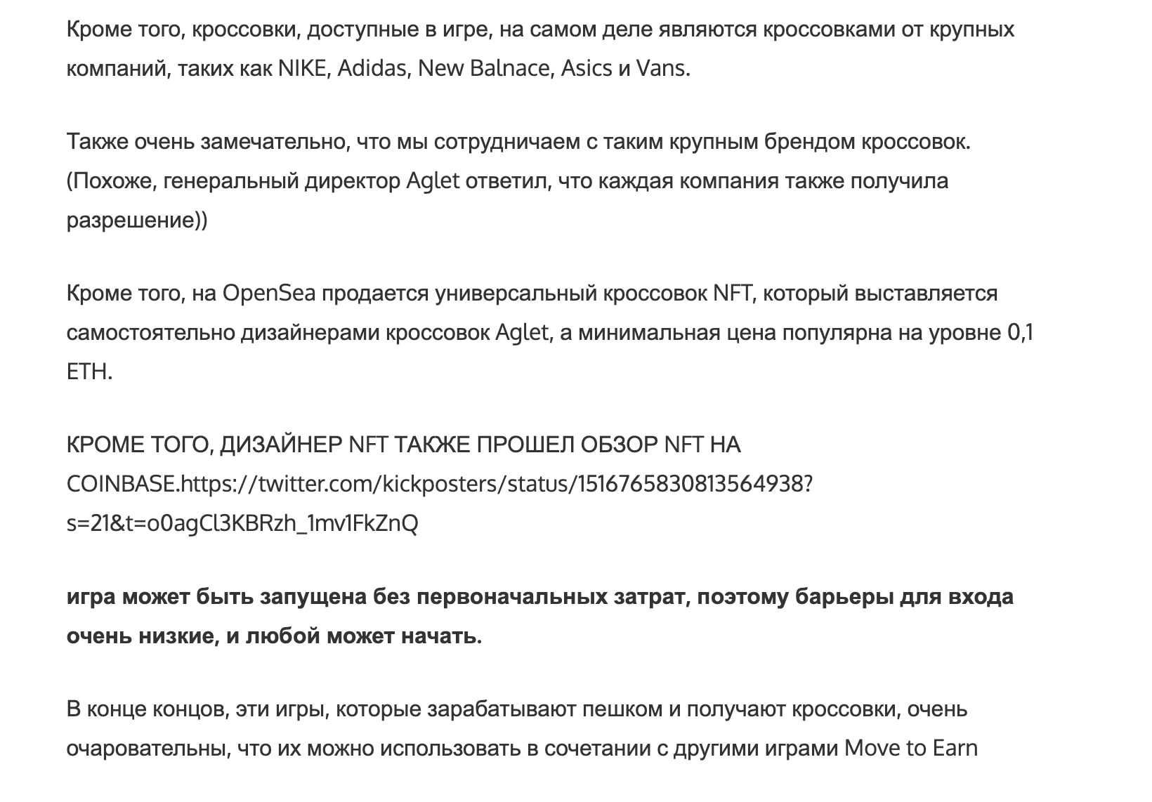 Кто же стоит за разработкой проекта? CEO, основательно — Ryan Mullins — Бывший директор Adidas. Официально Aglet был представлен ещё в 2020 году, но при этом основана компания была в 2018 году (Раньше Stepn'a). И изначально проект не планировался как m2e.. Также за проектом стоят такие люди, как: Owen Batt (Loc8.com), Lucy Crivelli Frey (Бывший сотрудник Reebok, Nike), Dan Freebairn.