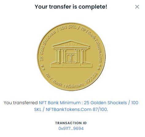 01.09.2022 67.4 GOLD SKL -10 USD Nix + 1 NFT Minimum ( 10 USD сам токен без ликвидности ) + 47.4 GOLD SKL на баланс - выплата партнеру блога ХайпоМания PACANSRAIONA911. Девятый вывод по программе бесконечного пассивного дохода с NFT BANK. В обороте: 674 SKL. Капитал на 01.9.2022 в Банке: 1,158.47 SKL. Израсходовано 10 USD Маны Кабинет по Закольцовке: viewtopic.php?p=159645#p159645 Кабинет NFT Bank: viewtopic.php?p=158433#p158433 Правила вывода по закольцовке на сентябрь 2022: https://t.me/hyipomania_com/2316 Покупка любого NFT с 26.08 до 4.09 от NFT Банка - получение бонуса по акции "Адаптация-15" https://t.me/hyipomania_com/2315