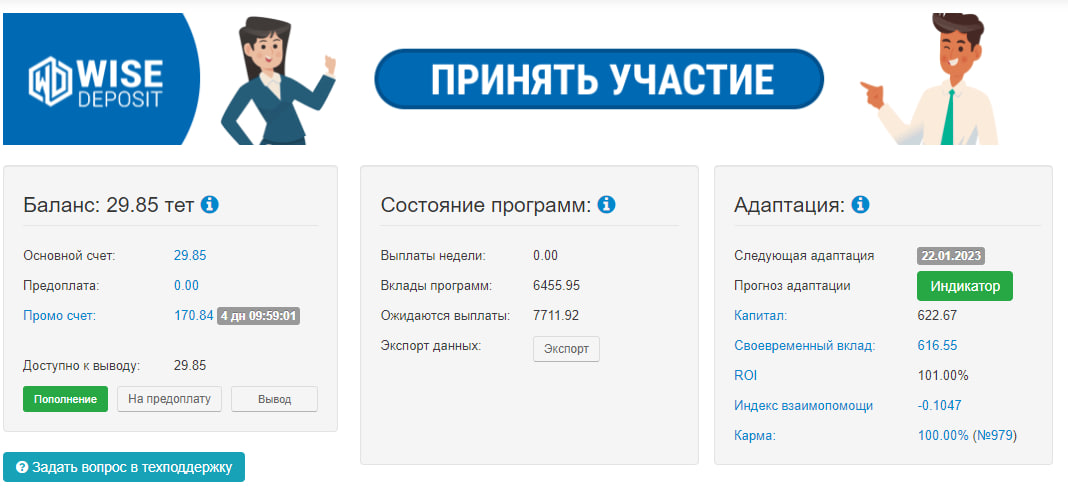 ВНИМАНИЕ! В связи со скамом проекта Wise Deposit акция «Адаптация с ХайпоМанией» сейчас изменена на собственную акцию NFT Bank без привлечения "чужих" проектов.