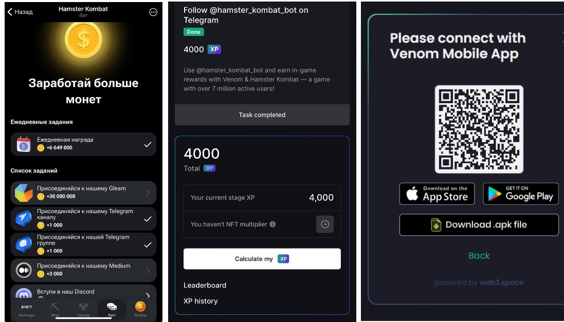 +25k монет, если у есть Telegram Premium Судя по сотрудничеству, токены будут на блокчейне VENOM + блокчейн имеет собственный кошелек VENOM . Будет 2 монеты в игре — governance и utility. Розыгрыш 30 000 000 Hamster Kombat Coins (500 000 coins победителям, всего 60 призовых мест ):