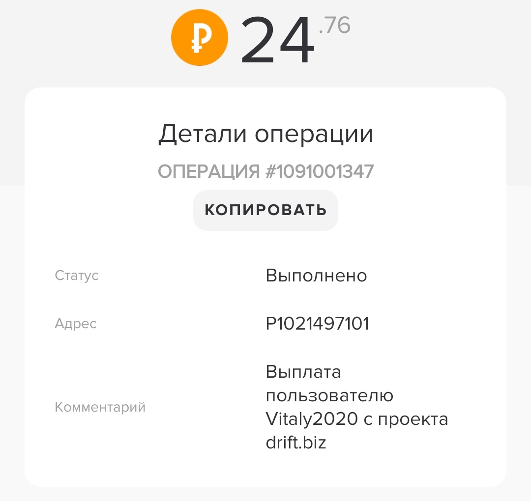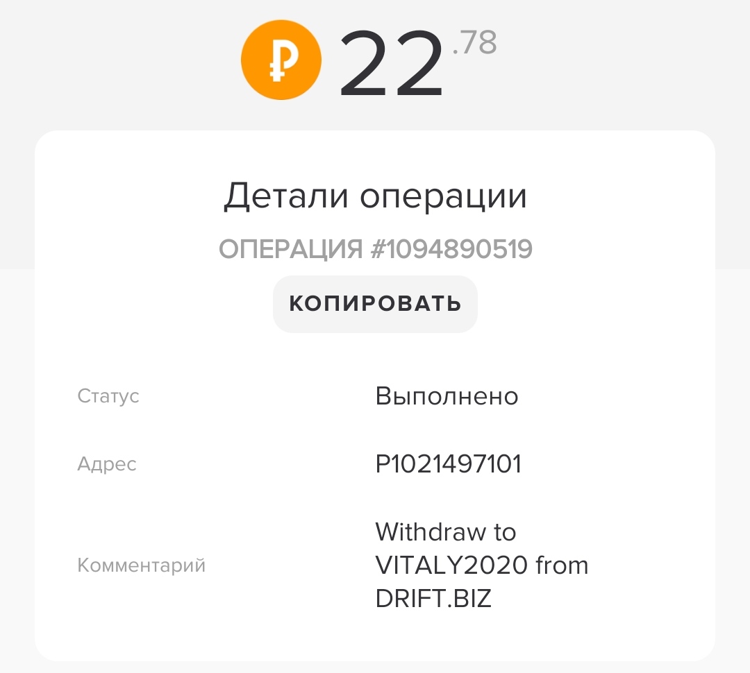 Комментарий: Выплата пользователю nhorbachuk с проекта drift.biz