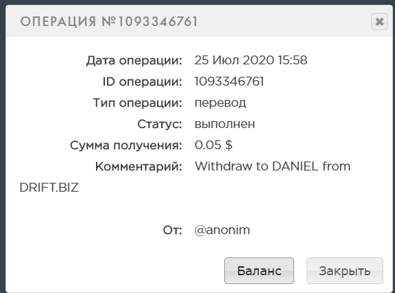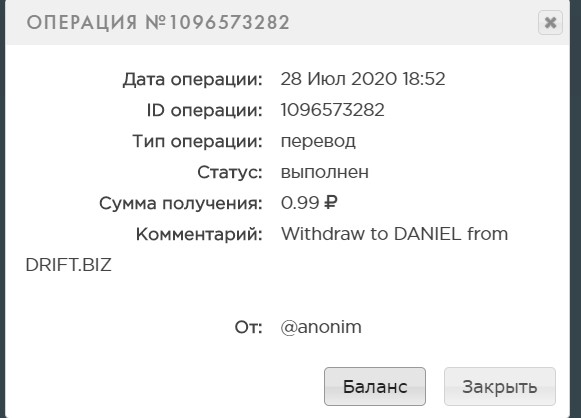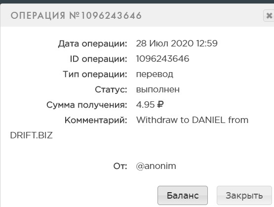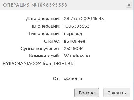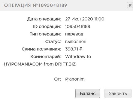 Комментарий: Выплата пользователю Maks100193 с проекта drift.biz