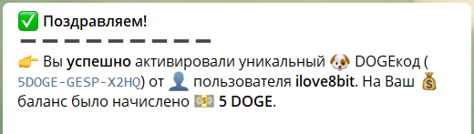 Успешно активировал DOGe-код, получил 5 DOG! Еще один отправлю партнеру Наталье. К сожалению, больше в проекте никого не знаю. Может, кто-то откликнется?