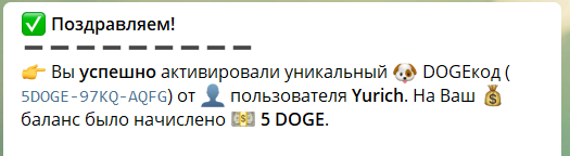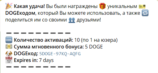 Улыбнулась удача! Получил от проекта по случайному распределению DOGe-код!