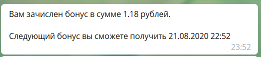 Второй бонус ежедневно через телеграмм-бот - очень удобно и приятно!
