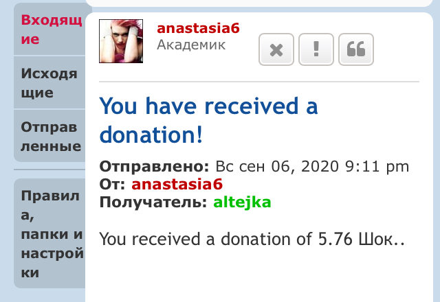 Благодарю!!!!anastasia6 писал(а): ↑Чт авг 27, 2020 3:46 pmАКЦИЯ "Активность на Хайпомании" 22 сезон . Вручение суперпризов!