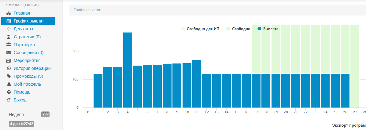 С первой недели все отработанные депозиты буду пускать на реинвест. Также буду дополнительно вкладывать свои деньги, пока карма не дойдет до 100%. И только после этого начну выводить средства. Так что сегодня внес 70$.