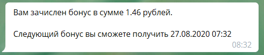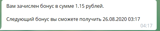 Второй бонус ежедневно через телеграмм-бот - очень удобно и приятно!