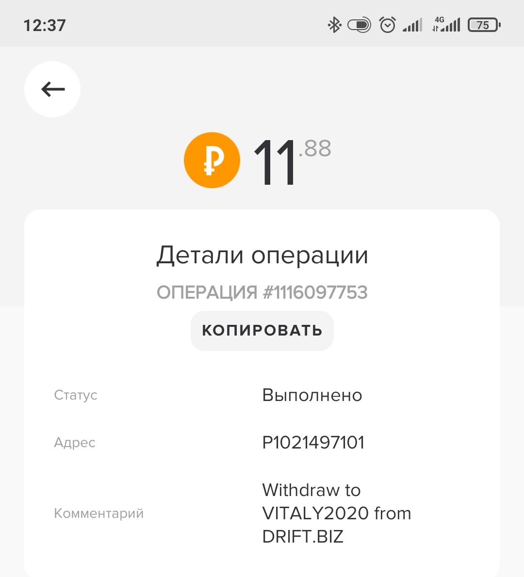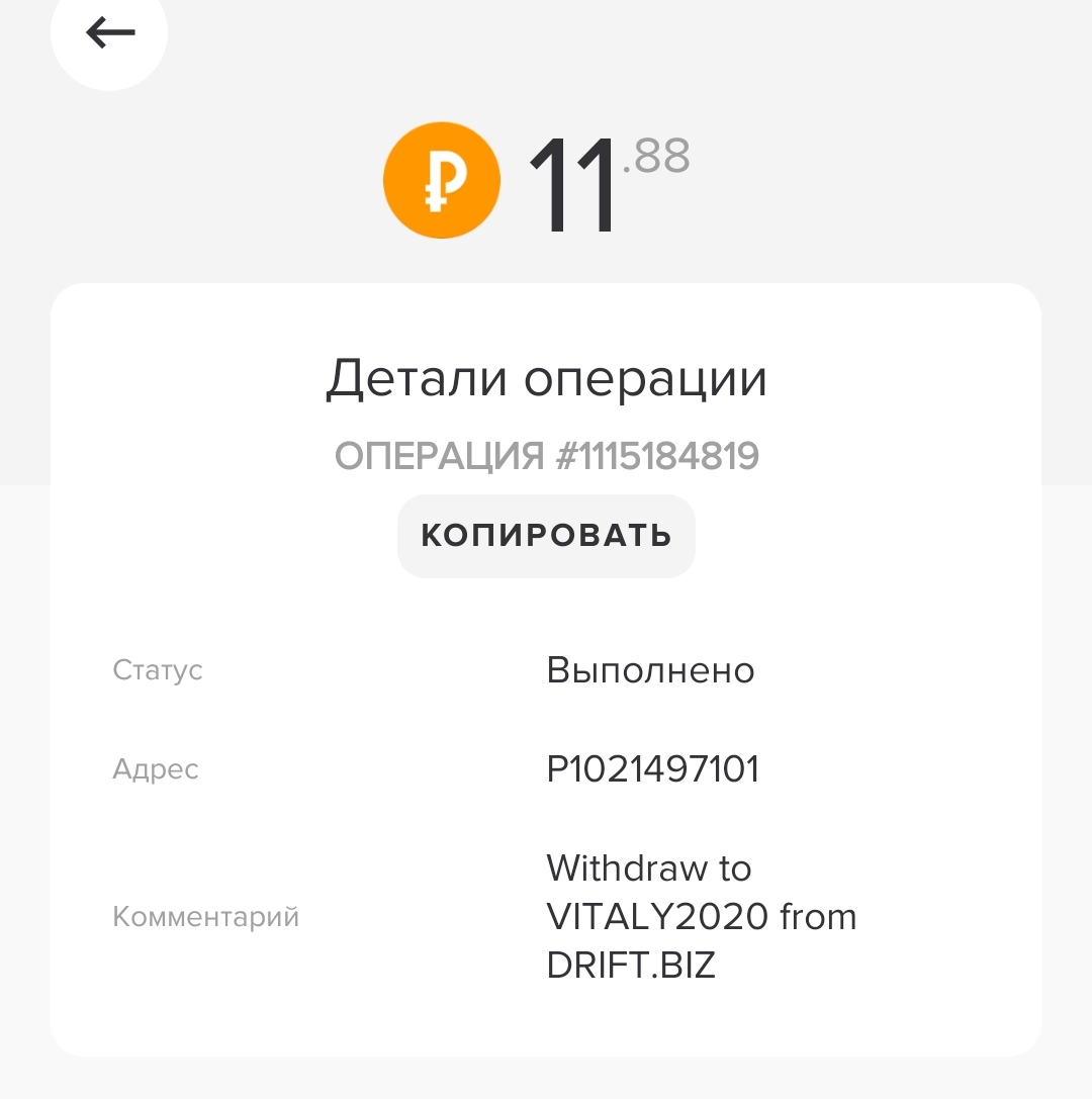 Comment: Amount: 50.00 RUB Withdraw from DRIFT.BIZ