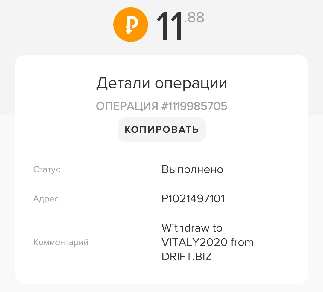 Получил очередную выплату с проекта! Дрифт платит стабильно и четко!