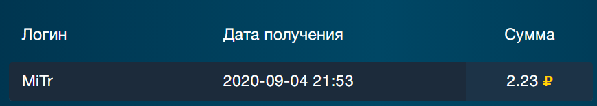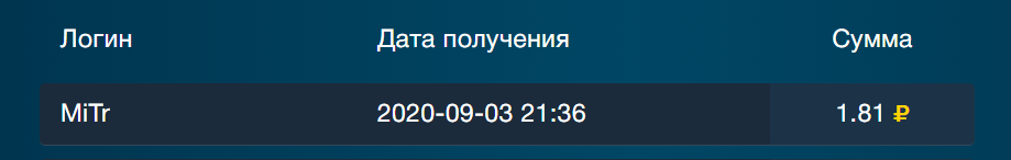 Выплата пользователю с проекта cashmarine.biz
