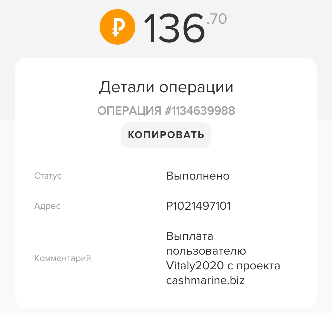 Comment: Amount: 75.00 RUB Выплата с проекта cashmarine.biz