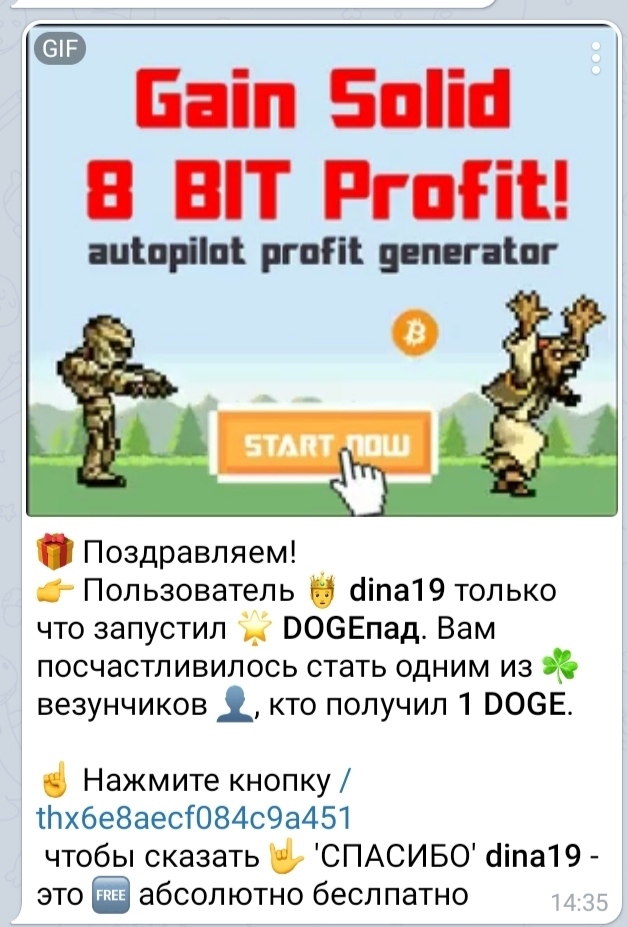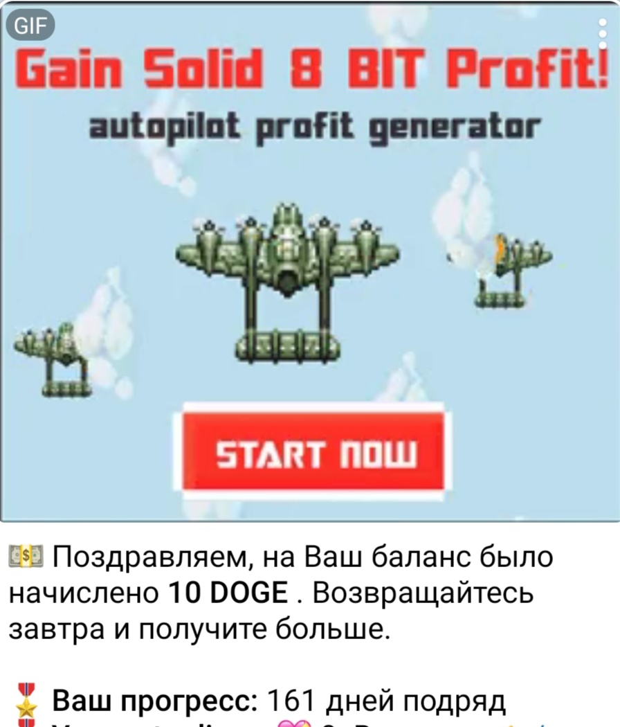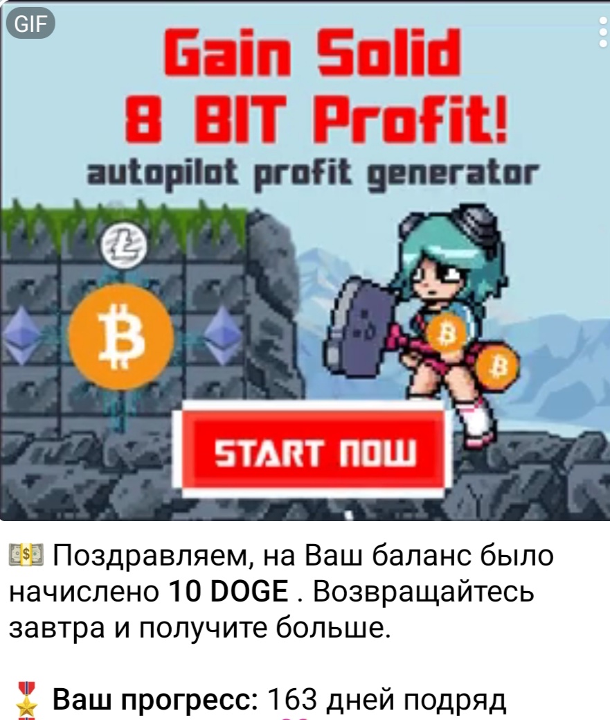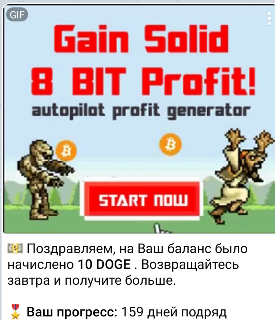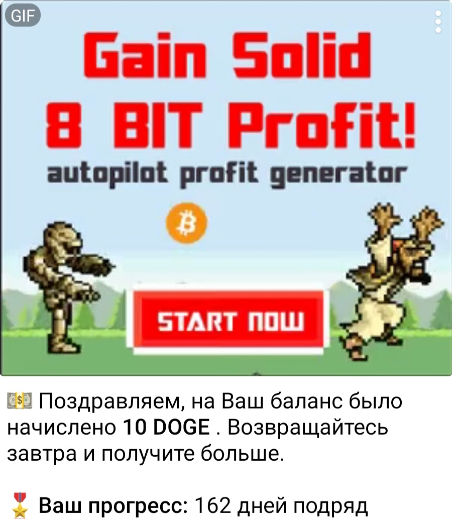 💵 Поздравляем, на Ваш баланс было начислено 1 DOGE . Возвращайтесь завтра и получите больше.