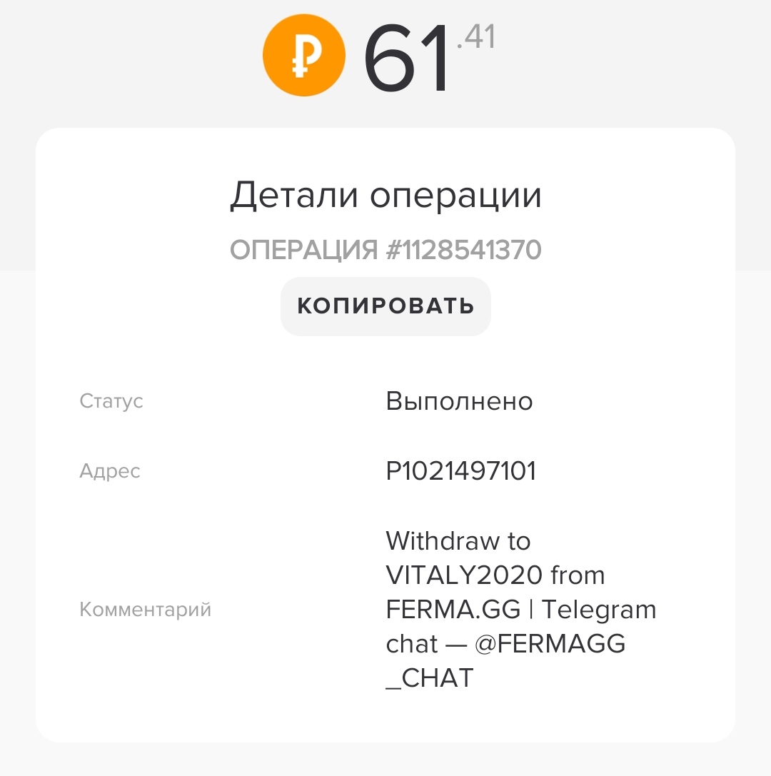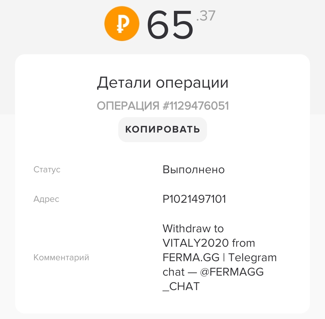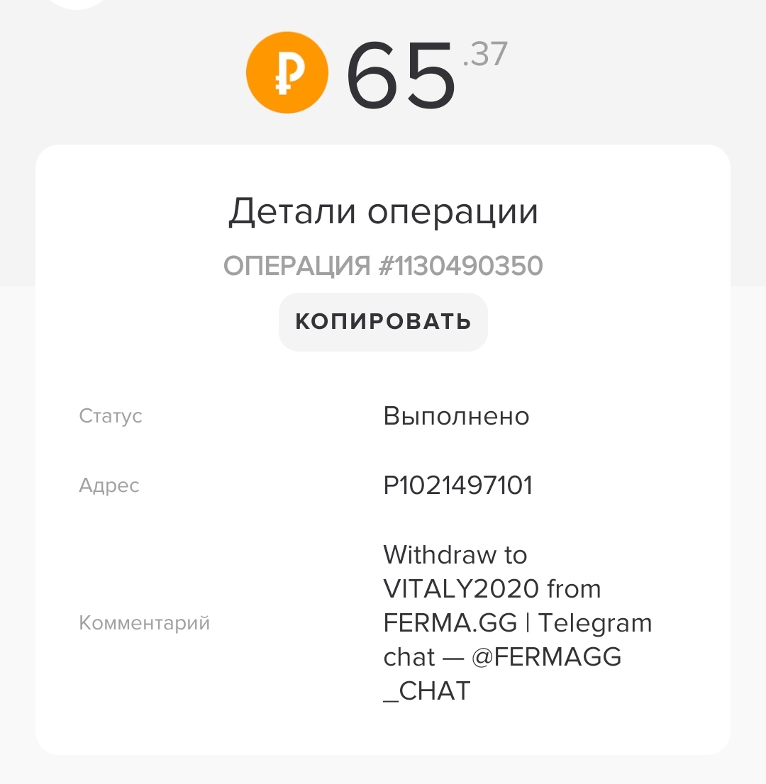 Комментарий: Withdraw to YURICH from FERMA.GG | Telegram chat — @FERMAGG_CHAT