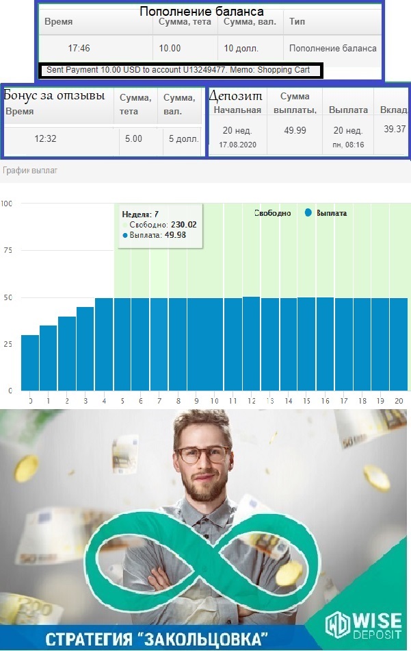 Я получил первую выплату из проекта Wise Deposit 10 долларов!