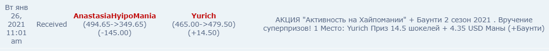 Получила бонус от блога ХайпоМания за Конкурс активности АКЦИЯ "Активность на Хайпомании" + Баунти 1 сезон 2021.