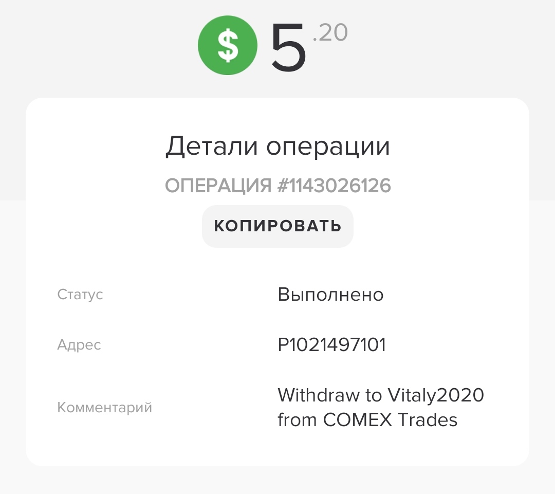 The amount of 1.05 USD has been deposited to your account. Accounts: U20560304->U26. Memo: API Payment. Withdraw from COMEX Trades.. Date: 12:05 09.09.20. Batch: 333538735. Инвестирую с блогом Hyipomania.