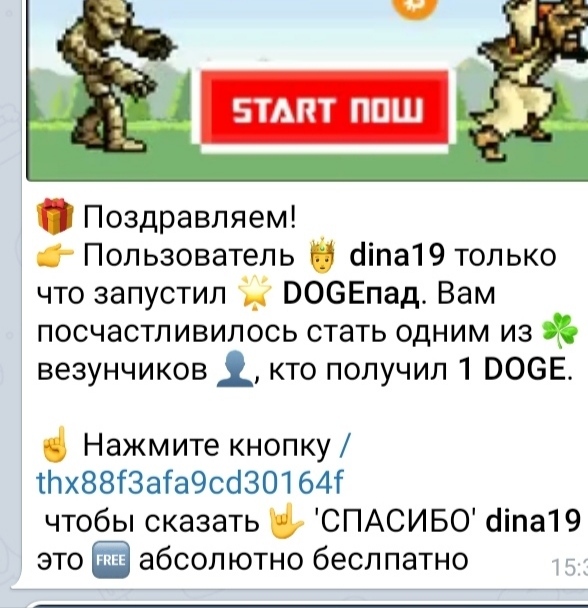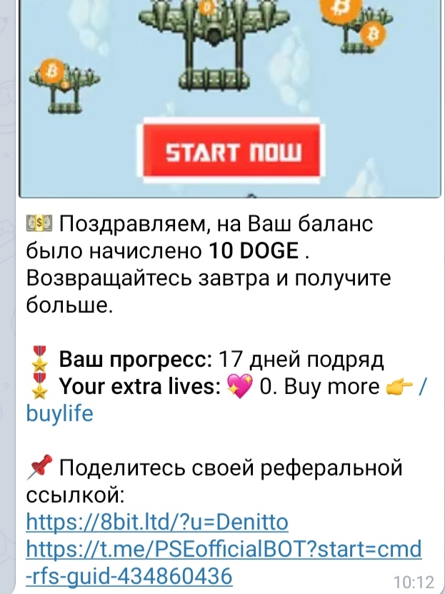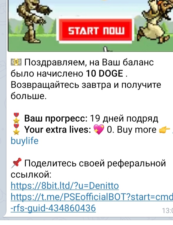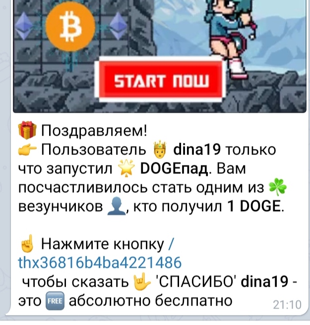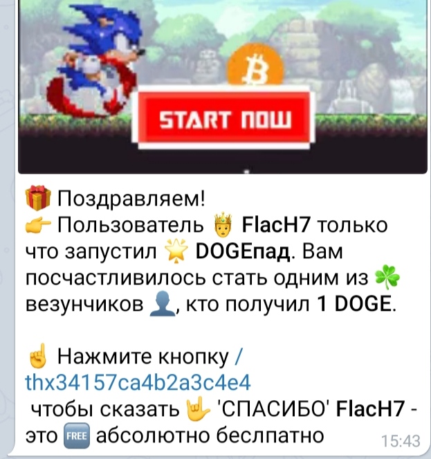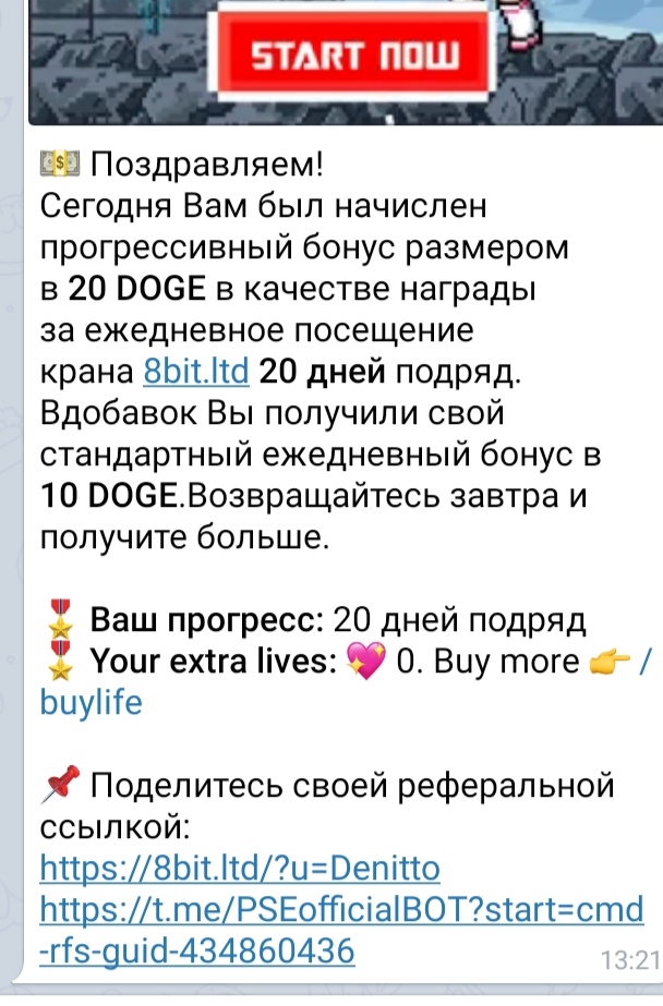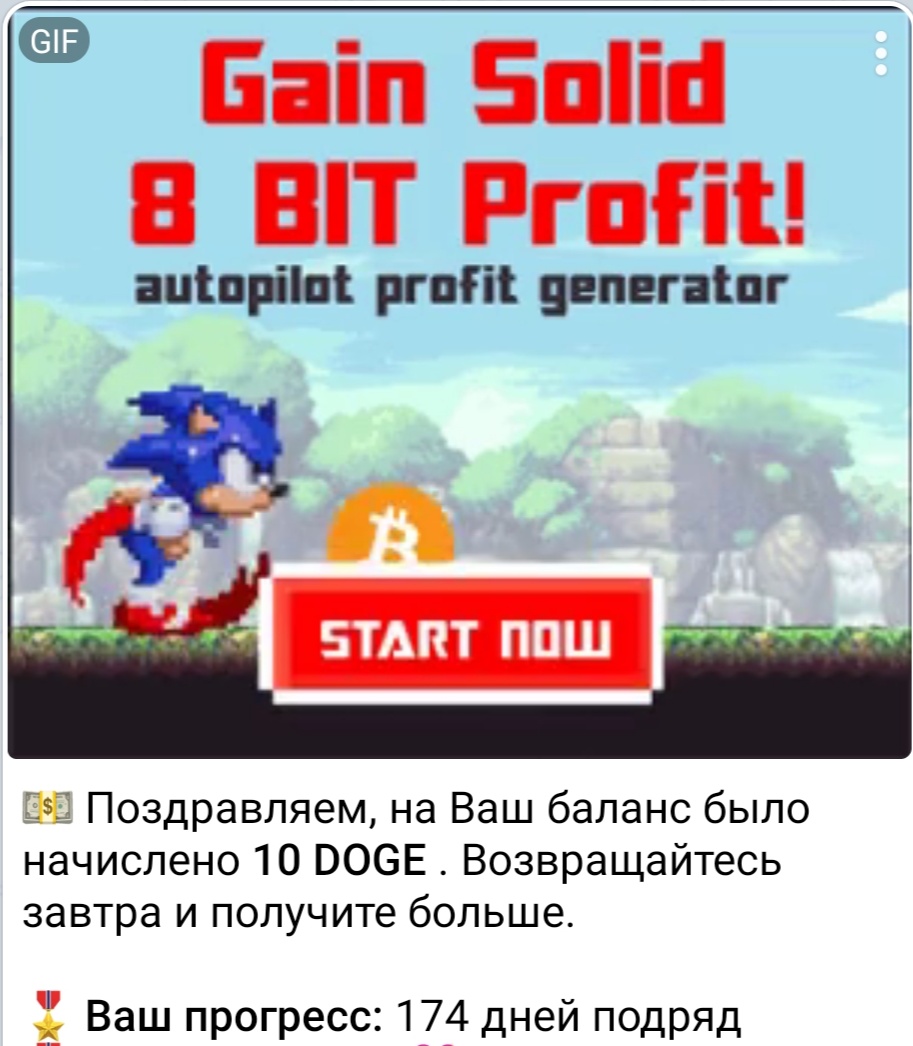 💵 Поздравляем, на Ваш баланс было начислено 1 DOGE . Возвращайтесь завтра и получите больше.