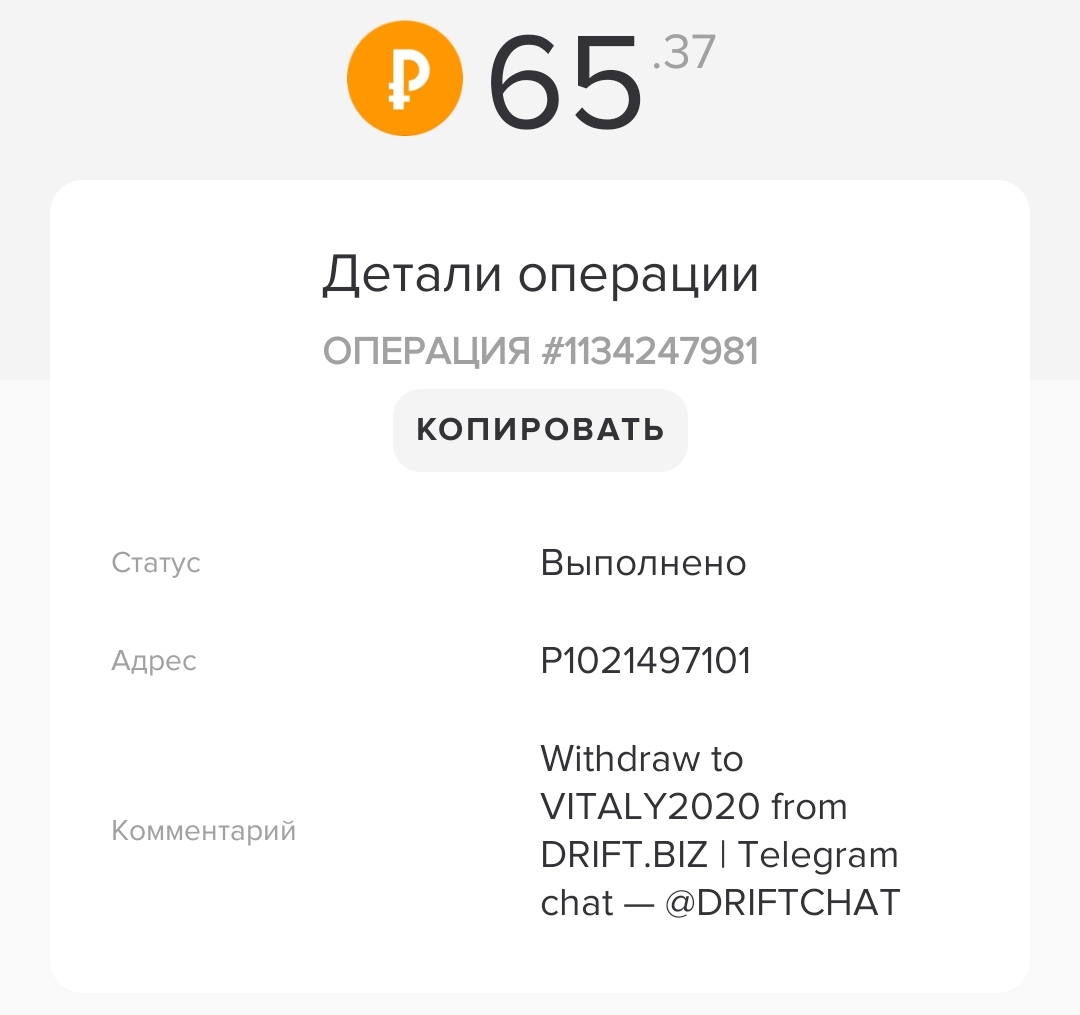 Комментарий: Withdraw to MITRU from DRIFT.BIZ | Telegram chat — @DRIFTCHAT