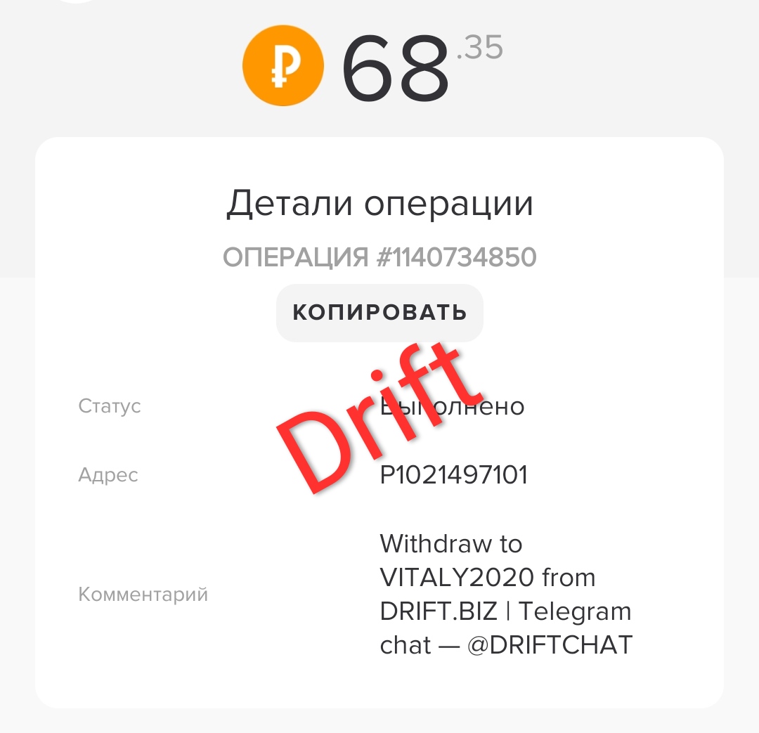 Комментарий: Withdraw to MITRU from DRIFT.BIZ | Telegram chat — @DRIFTCHAT