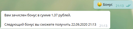 Второй бонус ежедневно через телеграмм-бот - очень удобно и приятно!