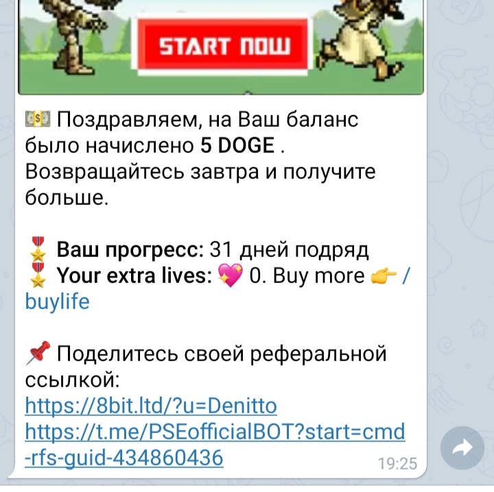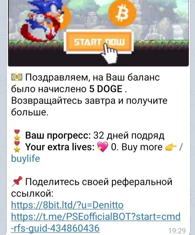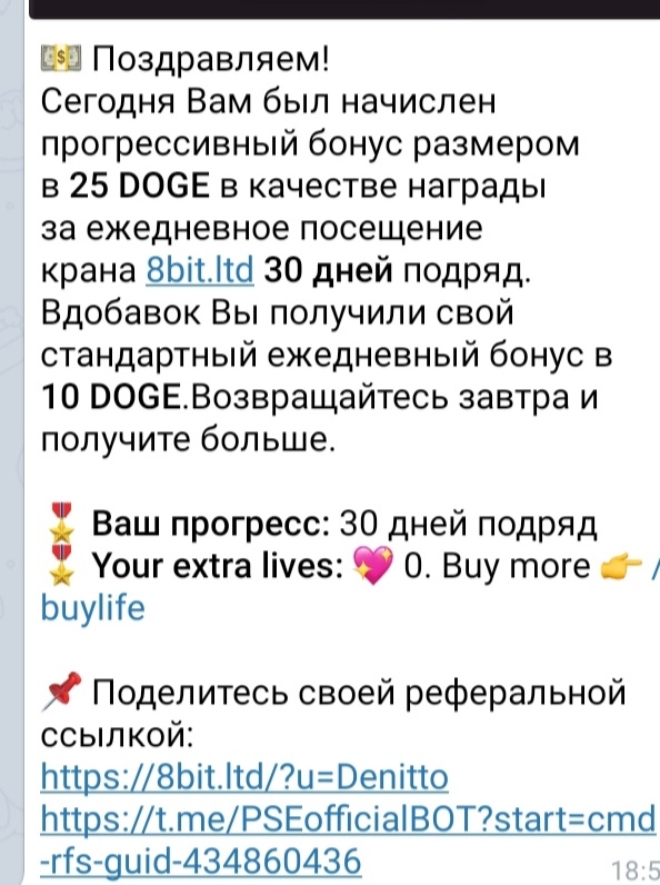 💵 Поздравляем, на Ваш баланс было начислено 1 DOGE . Возвращайтесь завтра и получите больше.