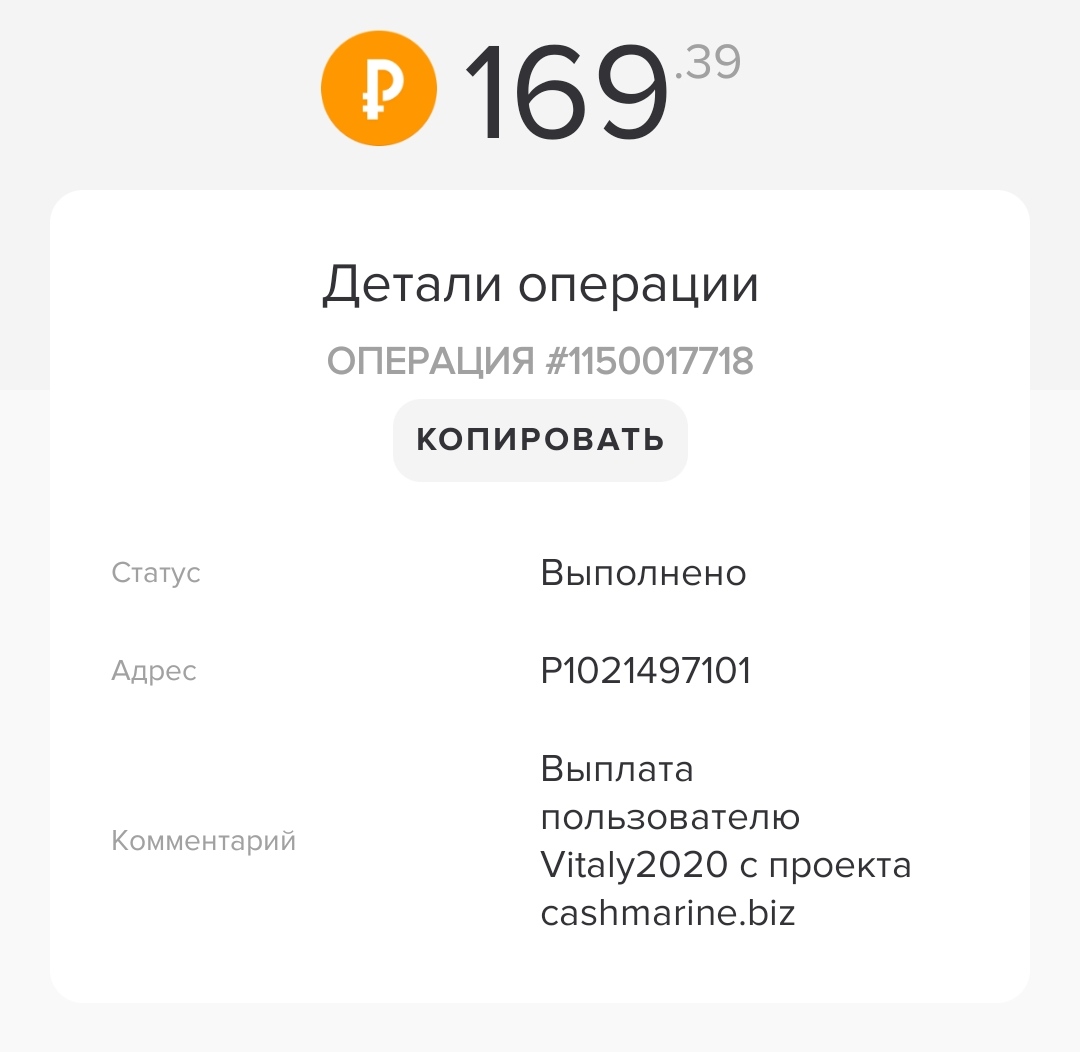 Comment: Amount: 80.00 RUB Выплата с проекта cashmarine.biz