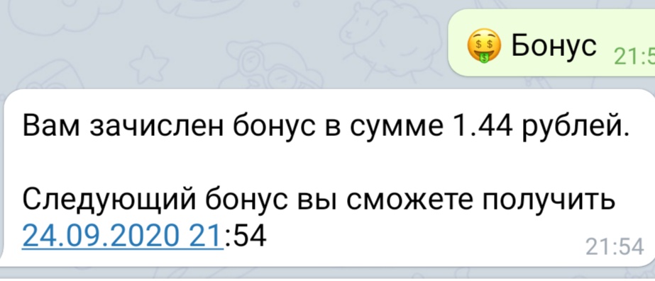 Второй бонус ежедневно через телеграмм-бот - очень удобно и приятно!