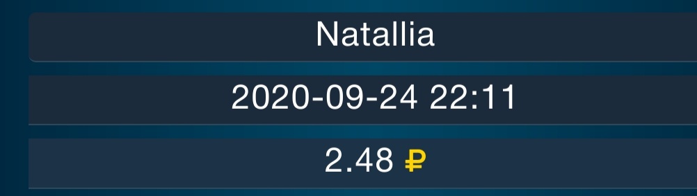 Дата: 24 Сен 2020 10:37 ID операции: 1154162138 Тип: перевод Статус: выполнен Сумма: 49.52