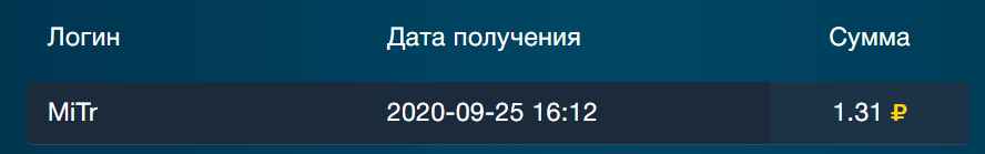 Комментарий: Выплата пользователю MiTr с проекта cashmarine biz