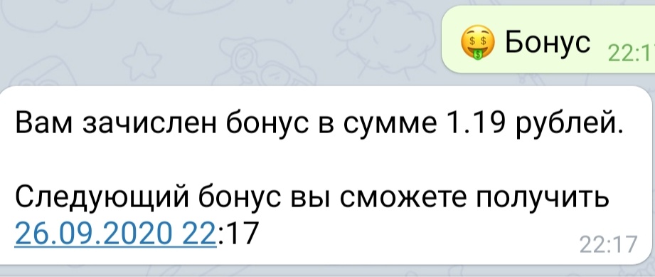 Второй бонус ежедневно через телеграмм-бот - очень удобно и приятно!
