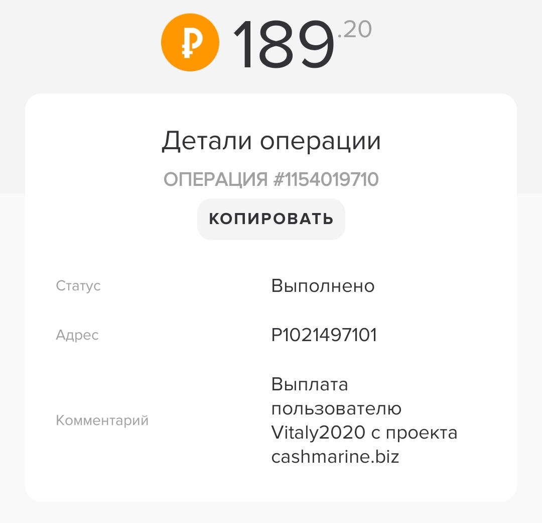Comment: Amount: 80.00 RUB Выплата с проекта cashmarine.biz
