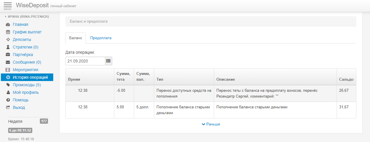 Здравствуйте!! Уверенными темпами двигаюсь по пути ""Закольцовки", на этой неделе создала уже 10-й депозит на 25 неделе. Также получила бонус за отзывы 4.5 ТЕТ. Закрылась 14 программа, часть использовала на новую программу, а остаток в 10$ вывела на свой кошелёк. Присоединяйтесь к проекту и будем зарабатывать вместе!