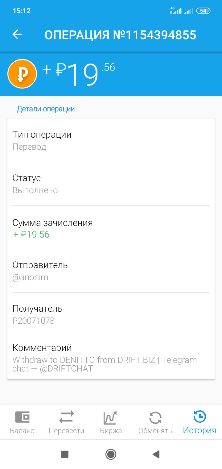 Комментарий: Withdraw to EVGENY80 from DRIFT.BIZ | Telegram chat — @DRIFTCHAT