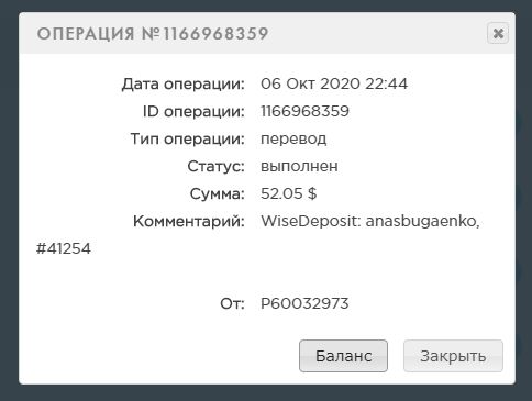 Я получил очередную выплату из проекта WiseDeposit 45 долларов!