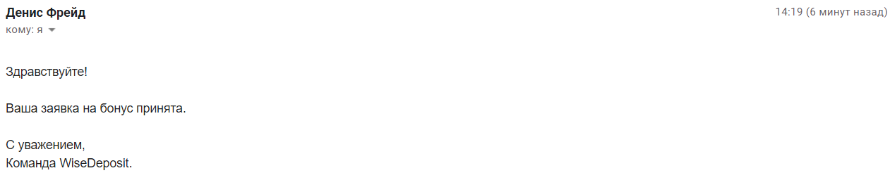 Подал заявочку на бонусы за отзывы о выводе из проекта WiseDeposit!