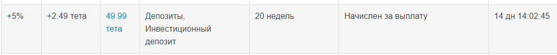 Создал новый депозит в проекте на 39.38 долл. (с учетом промо-кода 10%) на 20-ю неделю!