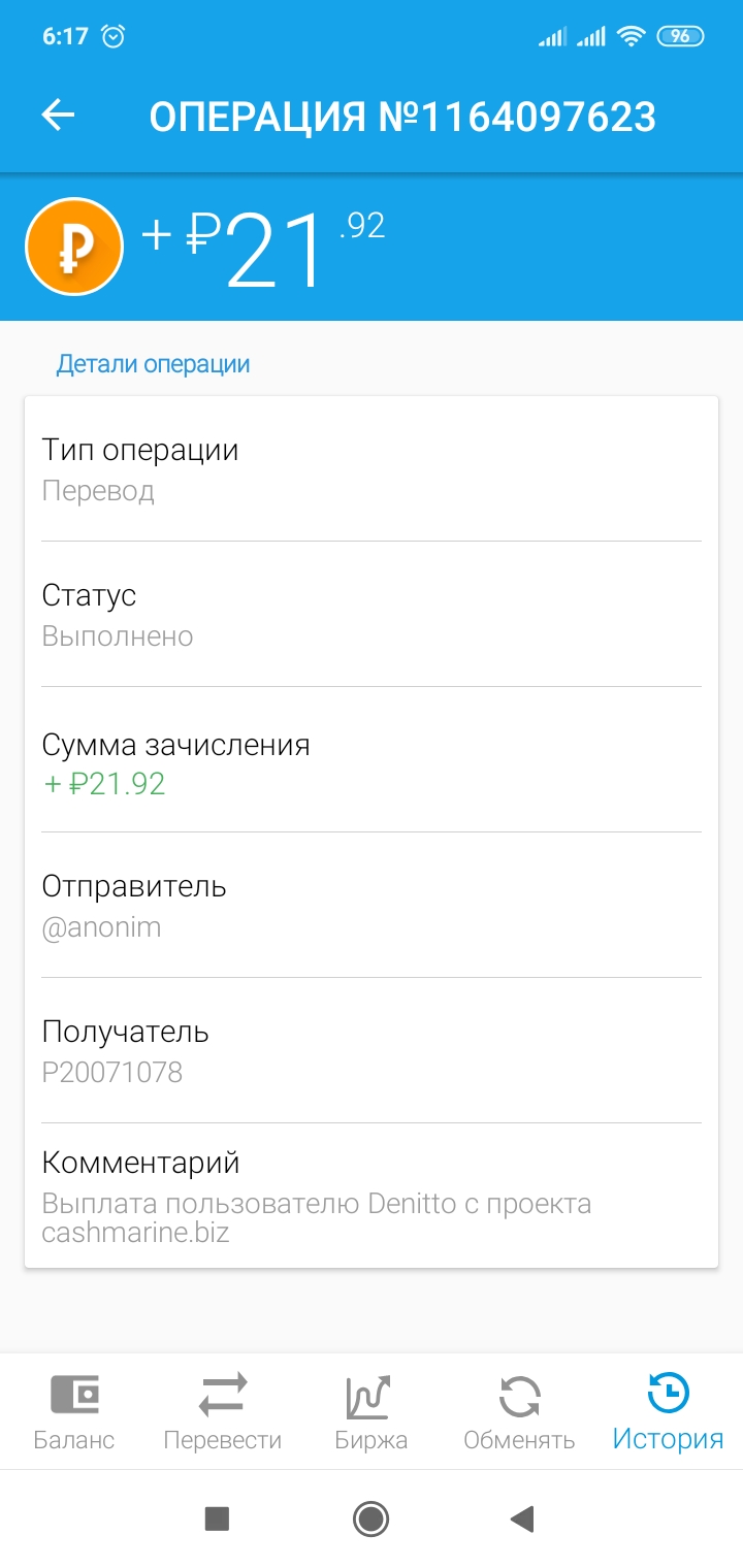 Comment: Amount: 250.00 RUB Выплата с проекта cashmarine.biz