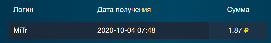 Проект платит.Получена выплата с проекта.