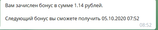 Второй бонус ежедневно через телеграмм-бот - очень удобно и приятно!