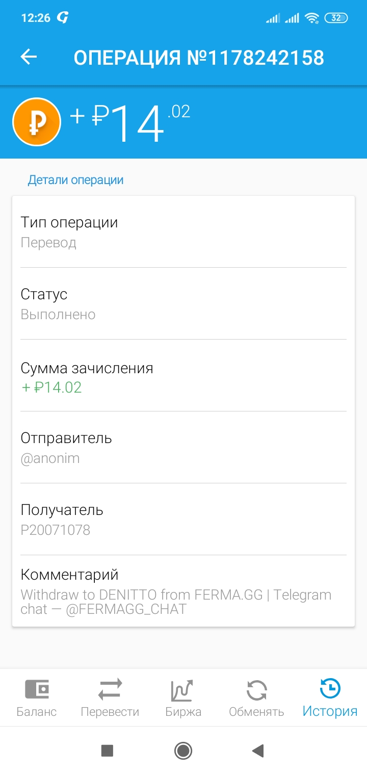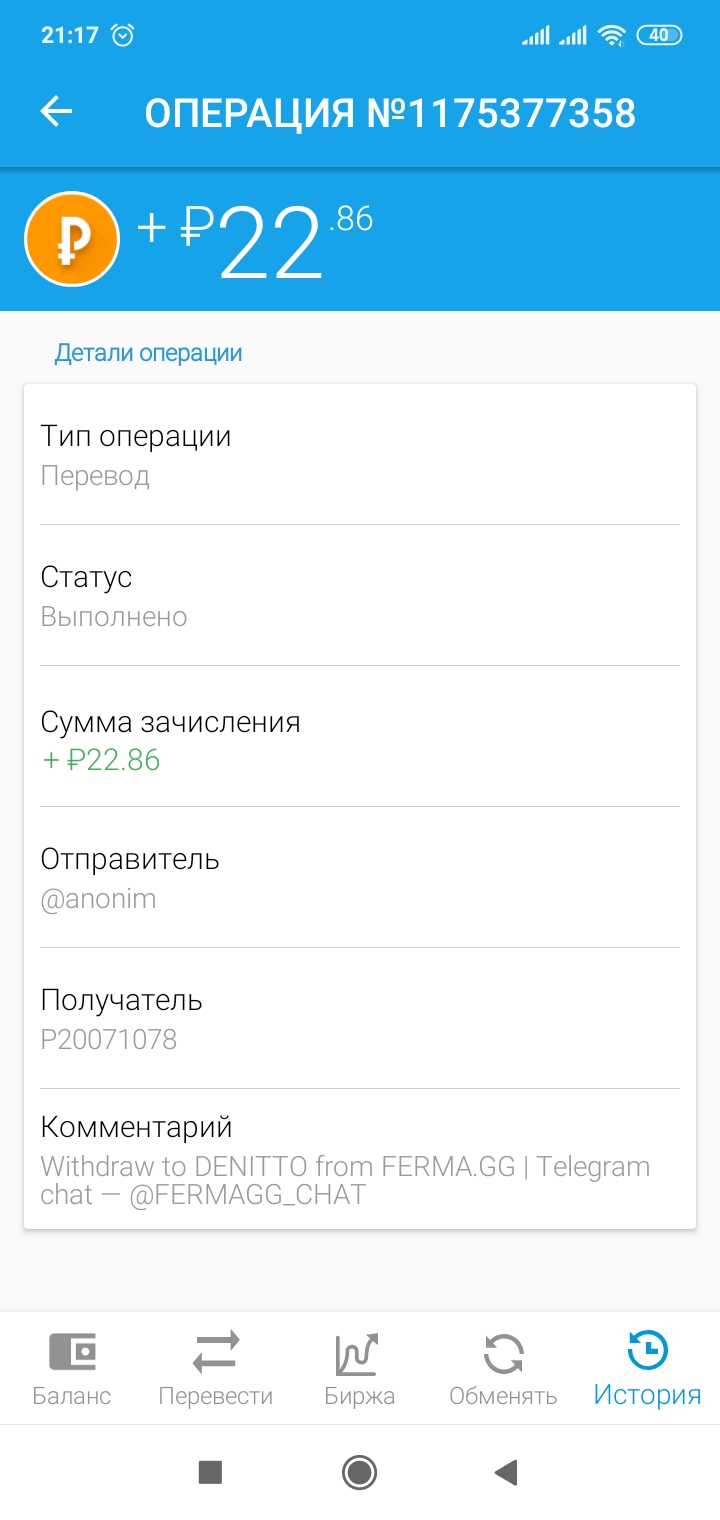 Withdraw to EVGENY80 from FERMA.GG | Telegram chat — @FERMAGG_CHAT