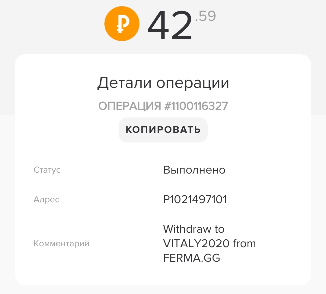 Получатель платежа: Ferma / ferma.gg [подать жалобу]