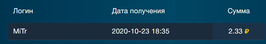 Проект платит.Получена выплата с проекта.
