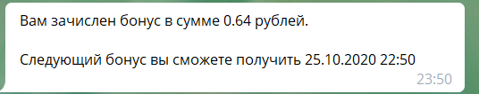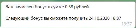 Второй бонус ежедневно через телеграмм-бот - очень удобно и приятно!