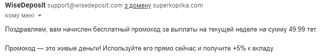 Re: WiseDeposit: 200% дохода! Бонус блога: 20% Страховка 100%