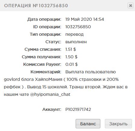 Выплата пользователю govlord блога ХайпоМания ( 100% страховки и 200% рефбек ) . Вывод 15 шокелей. Транш второй.