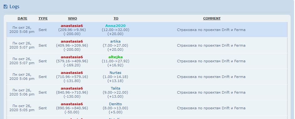 Вт сен 29, 2020 7:21 pm Received Yurich +24.00 Страховка по проекту coffee-tea ltd.