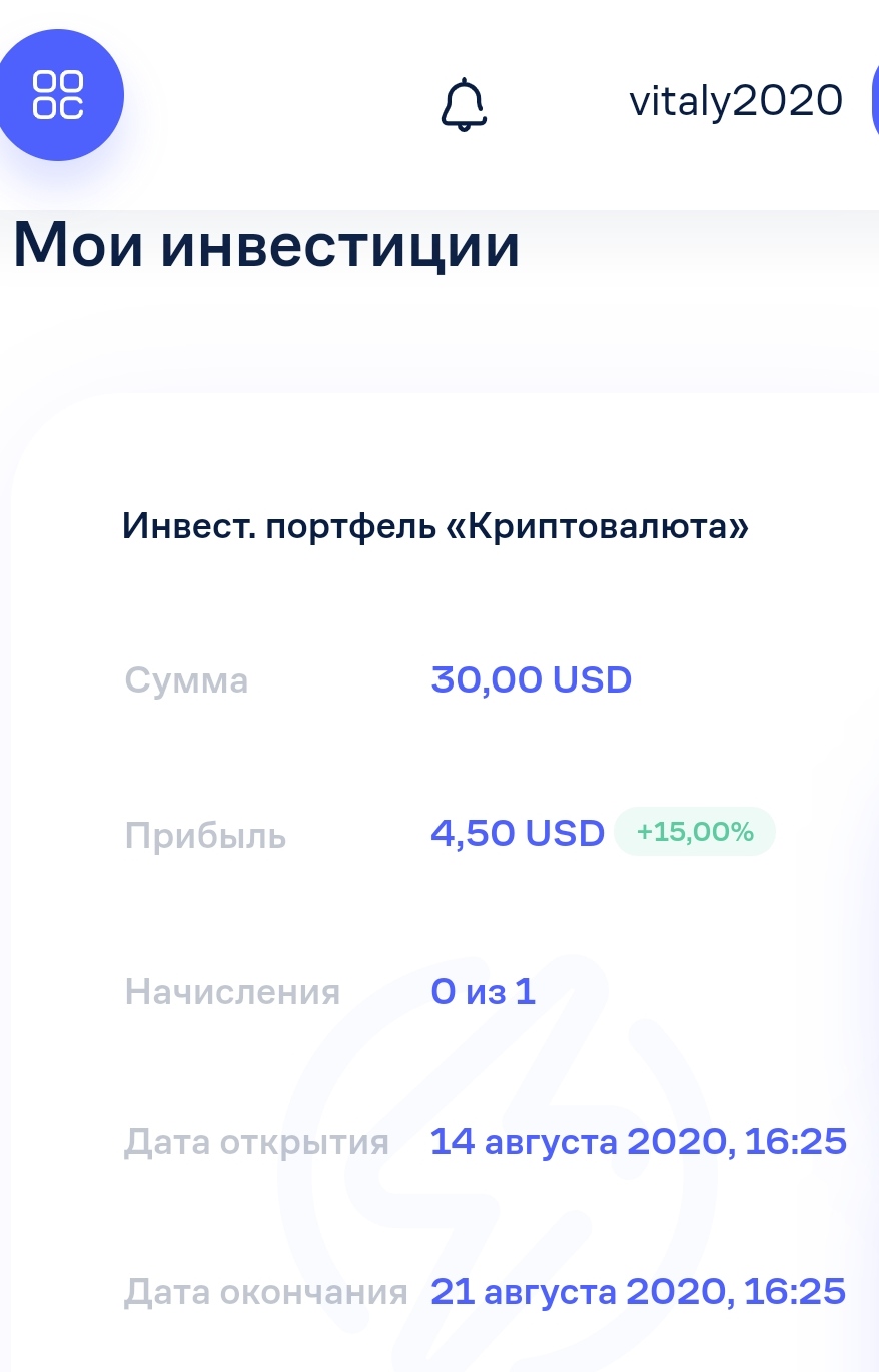 Криптовалюта 115% через 7 дней | Вклады от 2000 RUB / 30 USD до 9999 RUB / 149.99 USD