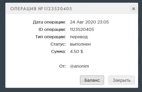 Принимает: Payeer, Perfect Money, Яндекс.Деньги, QIWI, Bitcoin, VISA/MasterCard/МИР, мобильные операторы