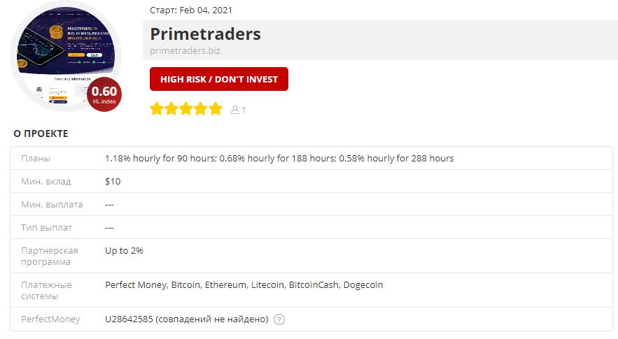 📣 Новый партнерский проект на ХайпоМании - Primetraders , стартовавший как фаст еще 2.02.2021.